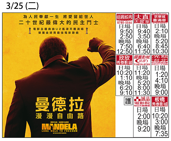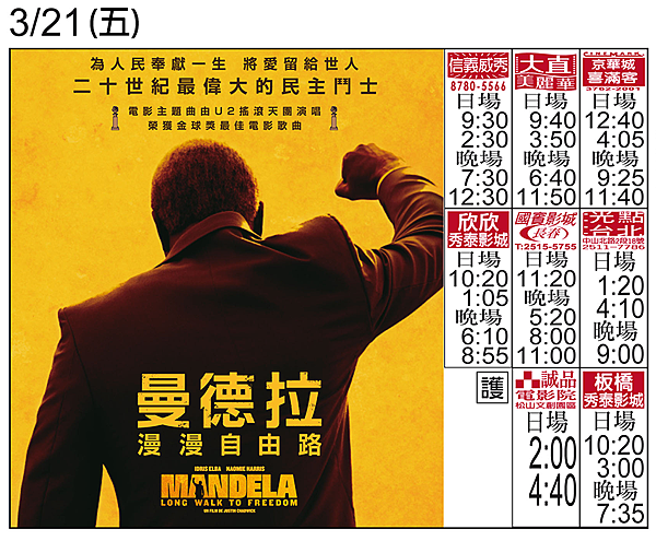 《曼德拉:漫漫自由路》首週場次表